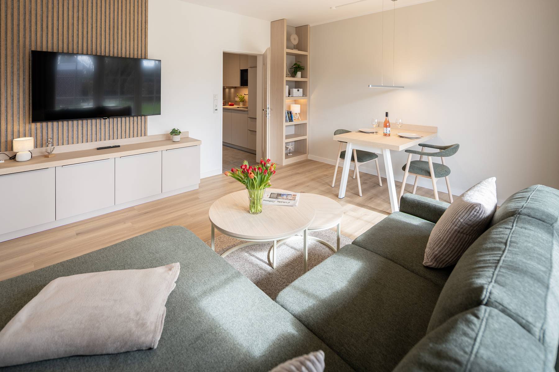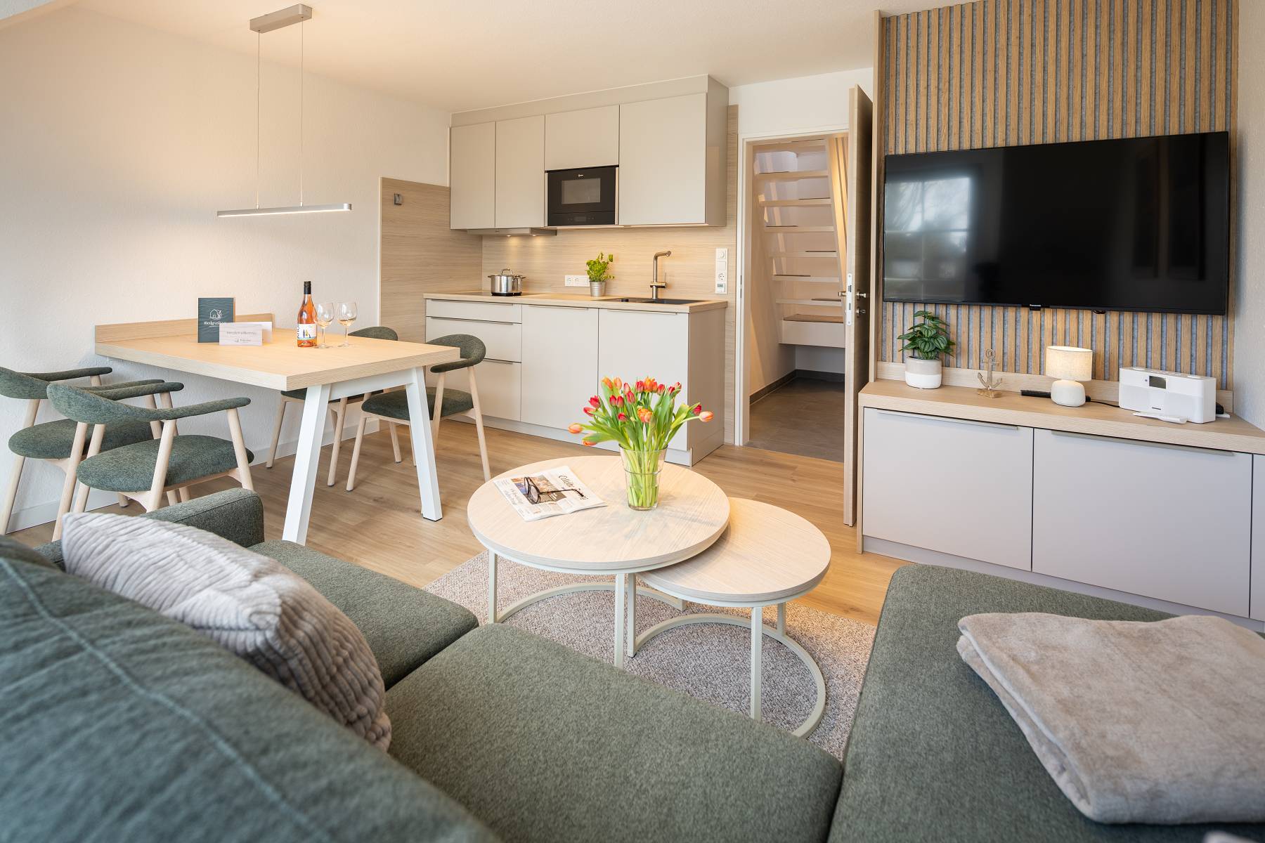 Freuen Sie sich auf neue, voll ausgestattete Küchen mit Spülmaschine, moderne Smart TVs, stabiles und schnelles WLAN, hochwertige neue Bodenbeläge, stilvolle, neue Möbel sowie neue Betten inklusive hochwertiger Matratzen und Lattenroste für erholsamen Schlaf.